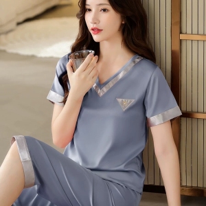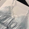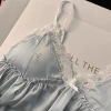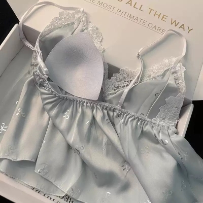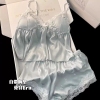 High-grade light blue ice silk pajamas women's summer bow lace camisole shorts home clothes two-piece set