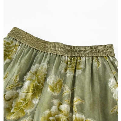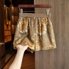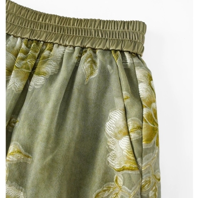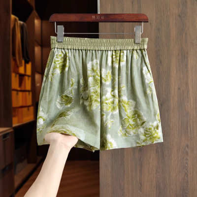 Green silk new Chinese jacquard loose shorts women's summer new small mulberry silk high waist casual wide leg pants