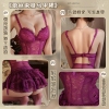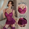 Sexy lingerie sexy free purple pajamas 2025 new small chest showing large size pure desire bed robe qqny female