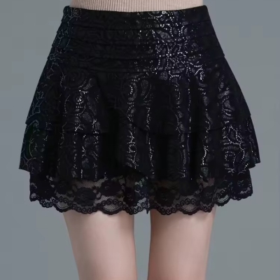 Genuine leather pleated skirt for women in autumn new style black sheepskin high waist slimming A-line umbrella skirt anti-exposure short skirt