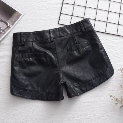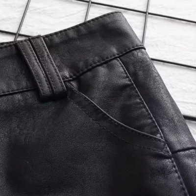 Counter 2025 spring and autumn new sheepskin shorts women's slim black slim leather pants boot pants bottoming wear trend