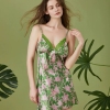 NoirTease summer thin silk printed nightdress ladies sexy lace cool suspender pajamas home clothes