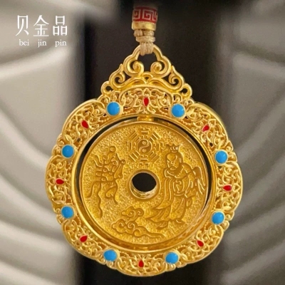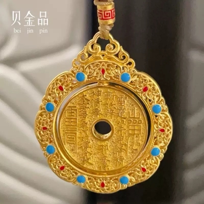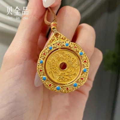 999 solid gold mountain ghost flower pendant 24K gold pendant peace buckle pure gold enamel national tide accessories gift