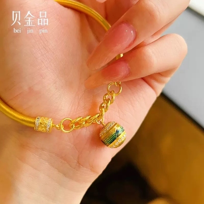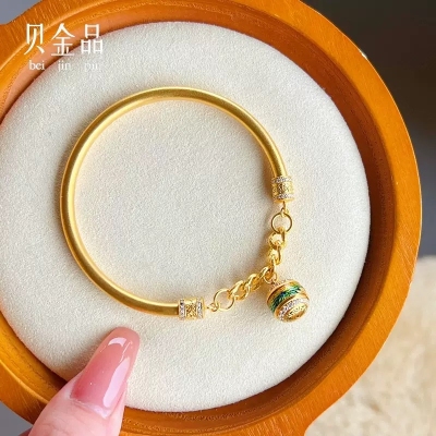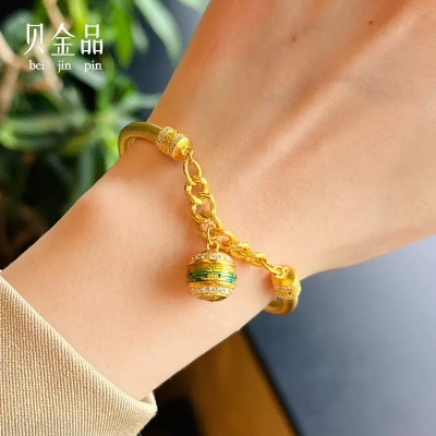 Beijinpin Ancient Gold 999 Pure Gold A Thousand Miles of Rivers and Mountains Pure Gold Hand-jeweled Enamel Hollow Filigree Bracelet Gift